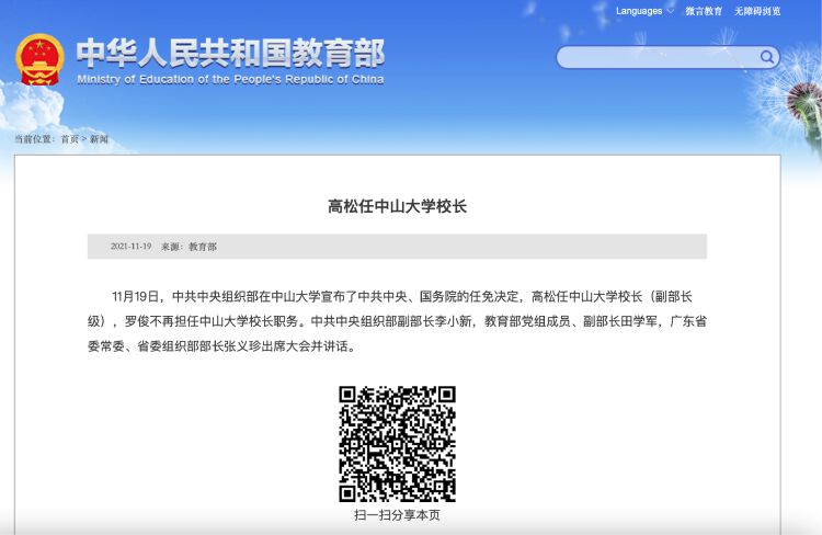 在上任中山大学校长之前,高松任华南理工大学党委副书记、校长。
