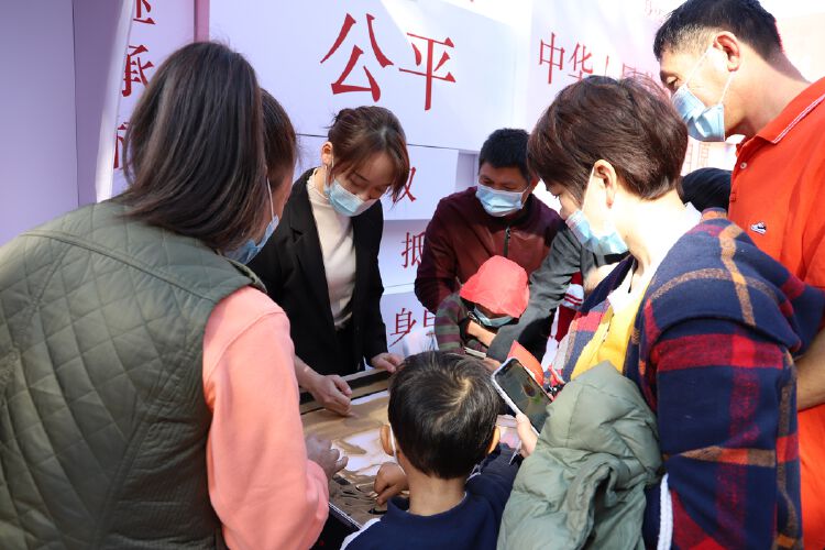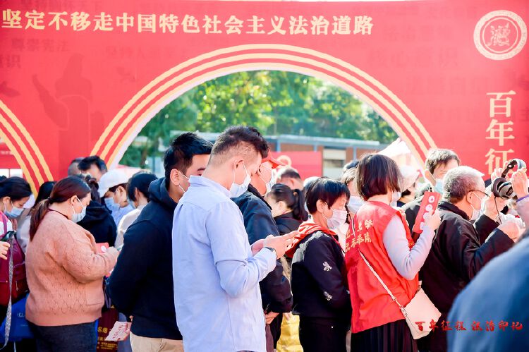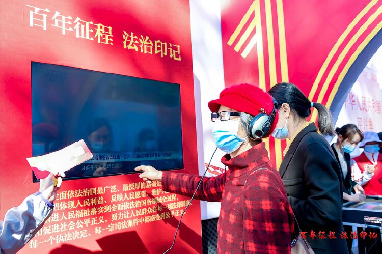 龙岗区司法局在现场还精心准备了“百年征程、法治印记”专题展览,以中国共产党成立100周年来的法治建设时间线为脉络,从党的诞生到新中国成立、改革开放,再到党的十八大,不同年代呈现不同的主题和元素,让人们置身时光长廊,切身感受中国共产党成立100周年来法治建设的光辉历程。