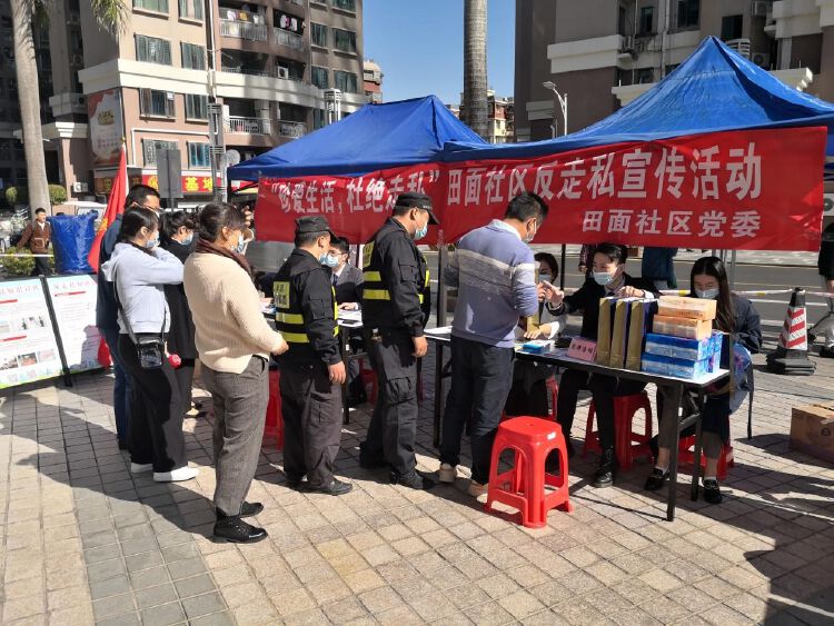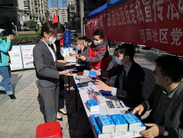 活动中,田面社区通过展架展示、发放宣传册、扫码关注公众号、法律咨询等形式,让居民群众了解什么是走私犯罪、常见的走私物品、走私方式、发现走私行为该如何举报等知识。