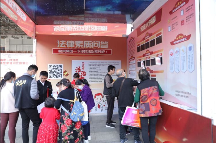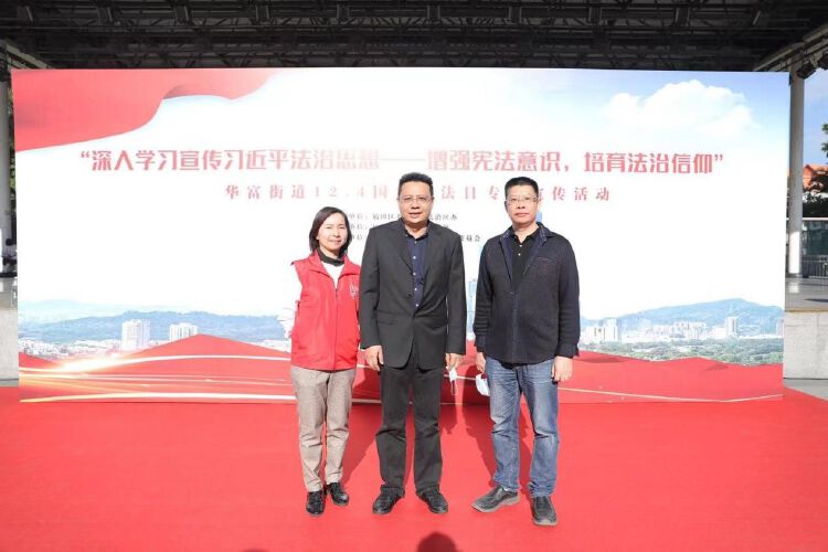 福田区司法局副局长颜冬生,街道党工委副书记、办事处主任郑湘涛,街道党工委副书记徐灿辉,街道党工委委员、办事处副主任林育莅临现场指导普法宣传工作,各参与部门紧紧围绕“深入学习宣传习近平法治思想——增强宪法意识,培育法治信仰”主题,同时结合“谁执法谁普法”工作要求,设立了法治发展历程展、法律咨询处、法治文化书画展、法治宪法游园会等区域,采用“可视、可亲、可感”浸润式的宣传形式,用“科普”的味道变“被动普法”成为“主动普法”。