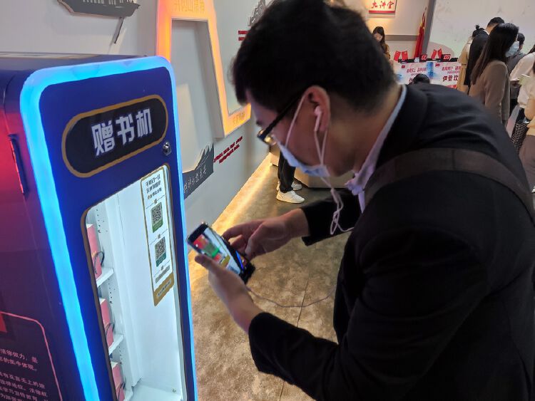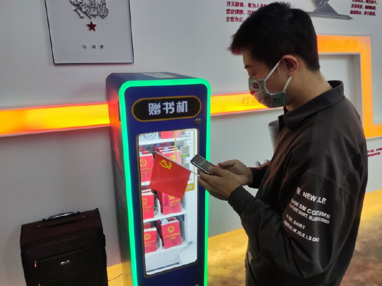 宪法宣传周活动期间,华富街道新田社区党委在国创党群服务中心精心设计打造了——《宪法》《民法典》自动赠书机,市民通过手机扫描二维码,可以免费领取《宪法》《民法典》纸质书籍。现场配备工作人员及时讲解操作流程,为群众免费提供服务,此次宣传周发放纸质书籍共计400册,让宪法、民法典切实走到群众身边、走进群众心里。