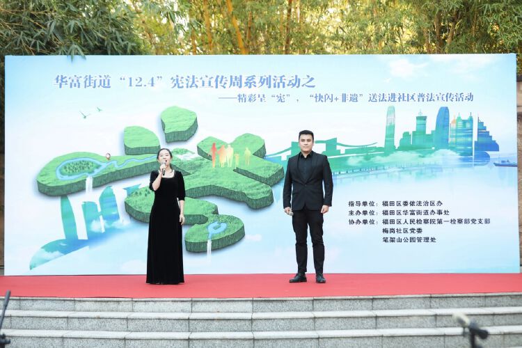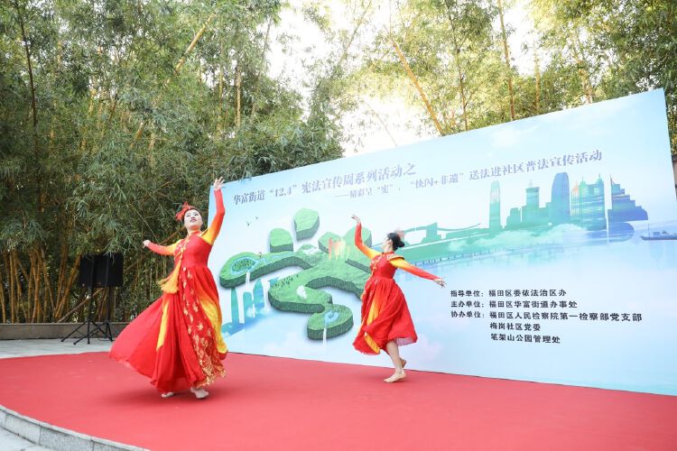 本次活动以“增强宪法意识,培育法治信仰”为主题,通过歌舞表演、非遗剪纸体验、糖画作品欣赏等形式,生动形象地为参加活动的居民普法。现场还邀请到了福田区人民检察院第一检察部党支部团队为大家解惑答疑,让群众近距离接触、了解法律知识,倡导群众主动学习宪法法律知识,弘扬宪法精神,维护宪法权威。活动现场将法治宣传与文艺节目融为一体,生动有趣地展现了尊法、学法、守法、用法的重要性,进一步掀起宪法学习宣传的热潮。
