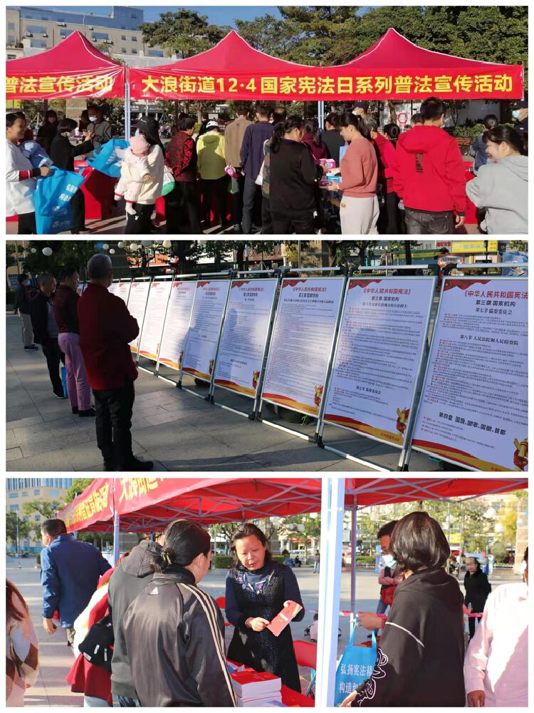 今年的“宪法宣传周”期间,大浪街道紧密结合党史学习教育和“八五”普法实施,主要以“主场活动+专题活动+主题日”方式进行。在“宪法宣传周”期间,开展社区矫正“开放日”活动、举办国家公职人员宪法专题法制讲座、开展宪法七进——进商圈、进社区、进校园、进机关、进企业、进景区、进网络等多种形式的宣传活动,把宪法精神真正融入到辖区群众的日常生活中,推动宪法学习宣传常态化、制度化。