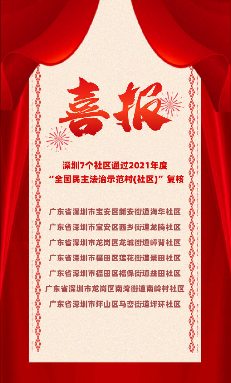 深圳7个社区通过2021年度“全国民主法治示范村(社区)”复核