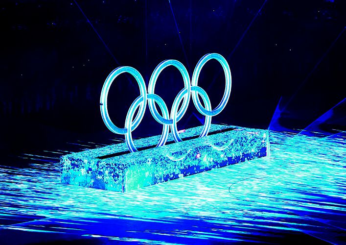 2月4日晚,第二十四届冬季奥林匹克运动会开幕式在北京国家体育场举行。这是开幕式上的“冰雪五环”。