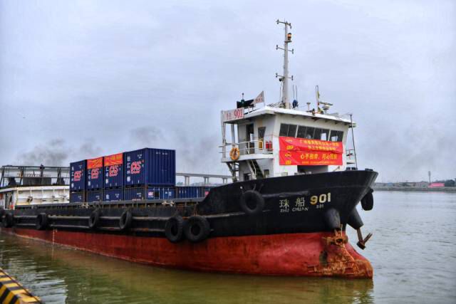 菜心在番禺莲花山港码头装船起运。