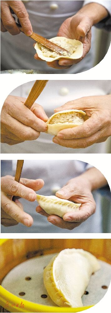 董珩演示灌汤饺的制作过程。