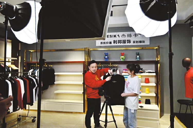 位于民众街道的中山市利邦针织制衣有限公司创立了自有服装品牌并在网上进行直播销售。