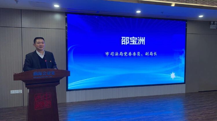 邵宝洲在讲话中表示,前海法院支持设立公证调解分中心是一次诉源治理新探索、多元解纷新实践。他指出,市司法局党委一直十分重视、引导和支持发挥律师、公证、仲裁、法援、司法鉴定、人民调解等公共法律服务力量,坚持预防为主、调解为先,努力从源头上化解矛盾纠纷。公证作为公共法律服务重要组成部分,是我国预防性法律制度,也是社会矛盾纠纷多元化解决的基础性司法资源,作为国家制度安排,公证当然地承载着国家赋予的预防纠纷、减少诉讼、非诉解决纠纷的职责使命。他要求,前海公证处要认真学习习近平总书记在中央全面深化改革委员会会议上的重要讲话精神,要坚持和发展新时代“枫桥经验”,充分发挥公证在非诉讼纠纷解决机制中积极作用,在前海法院指导下,在前海管理局支持下,以习近平总书记在建党100周年大会上重要讲话和在深圳经济特区建立40周年庆祝大会上的讲话精神为指引,秉承全心全意为人民服务理念,坚持依法合规,坚持调解公益服务,追求调解社会效益,严格调解程序和规则,丰富调解方式方法,确保调解工作质效,以良好创新探索、扎实工作成效,献礼深圳法治先行示范城市建设,迎接党的二十大胜利召开!