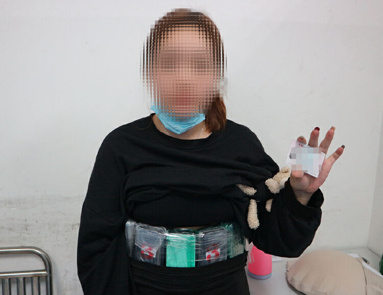 当天下午15时30分左右,23岁的女子黄某身穿黑色宽松休闲服、腹部微隆经拱北口岸进境,被关员截查。查验过程中,该女子声称自己怀有身孕,关员立即提供座椅供其休息,期间发现该旅客后腰部位存在明显异常,有身藏物品嫌疑。