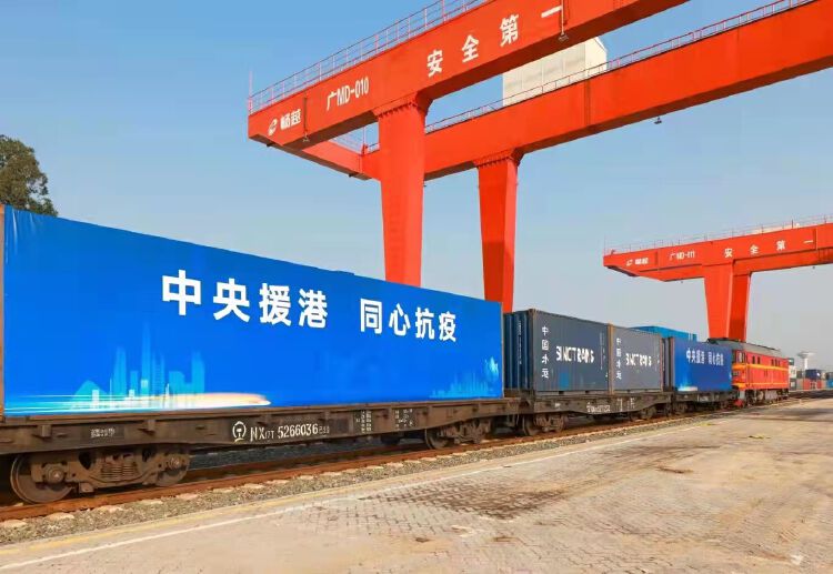 3月2日上午,首趟“中央援港同心抗疫”铁路援港班列满载物资,从深圳平湖南国家物流枢纽开出,驶向香港罗湖编组站,这标志着中央铁路援港班列正式开通发车。