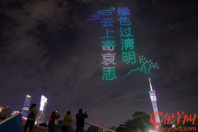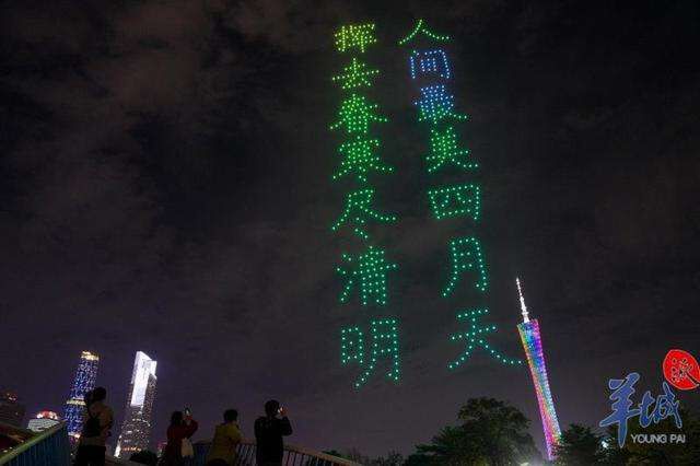 4月2日晚上9时,广州500架无人机通过高空“喊话”方式,呼吁人们“绿色过清明,云上寄哀思”。