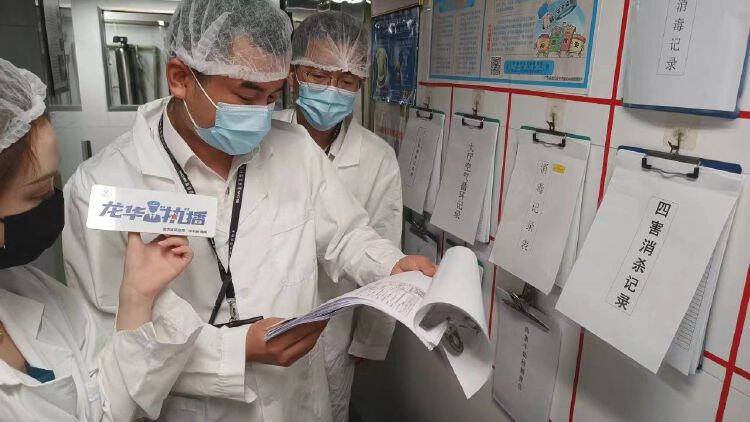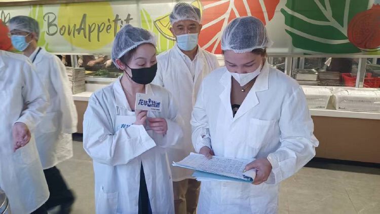 “风幕机有什么作用?”“工作人员洗手有什么特殊要求?”“配餐间有何具体要求?”执法人员一行来到食堂“后厨”,边检查边科普相关食品安全知识,“要关注保质期及食品添加剂使用管理等内容”“专间温度一般不应超过25度”“专间及专用操作区的专用工作服应与其他区域工作服在外观上有明显区分,方便管理”。执法人员逐一对面点间、水果间、分餐间等区域进行了检查,并提醒工作人员按规范操作。