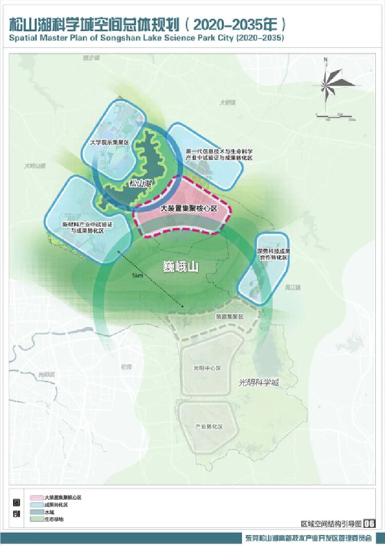 打开松山湖科学城规划蓝图,“北湖南山、一核四区”的空间布局清晰可见。其中,“一核”即为大装置集聚核心区,计划在巍峨山北麓及背山面湖地带,进一步集聚世界级重大科技基础设施等,形成重大科技基础设施带动的重大原始创新策源地。