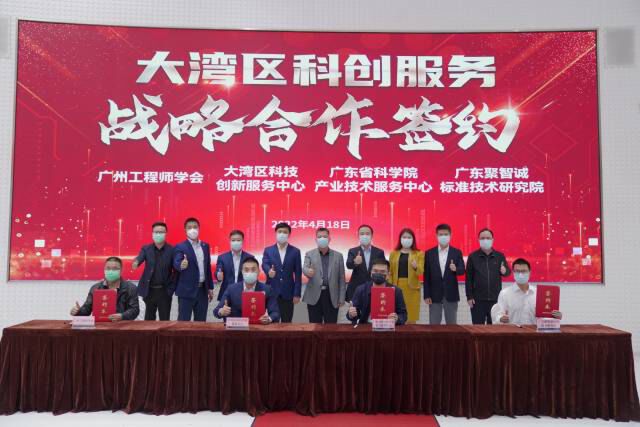 4月18日,大湾区科技创新服务中心(下称“大湾区中心”)和广东省科学院产业技术服务中心、广州工程师学会、广东聚智诚标准技术研究院,在广州(国际)科技成果转化天河基地就共建大湾区科创服务战略合作进行签约。