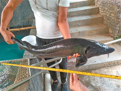 普查队长林健辉告诉记者,番禺区农业科学研究所独立研发的淡水鱼品种胜斑,也是一种非常有特色的品种。胜斑为上面提到的宝石鲈和淡水黑鲷杂交选育得到的新品种,其肉味鲜美,口感极佳,肉质甚至优于石斑鱼,故将其命名为“胜斑”;此外,从化区某苗种场专注于鲟鱼的繁育,如中华鲟、史氏鲟等,体形巨大,普查人员预先准备的用于拍摄鱼类资源的背景板也因为面积太小无法拍摄其全身照。