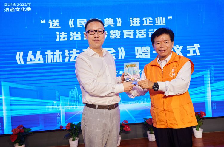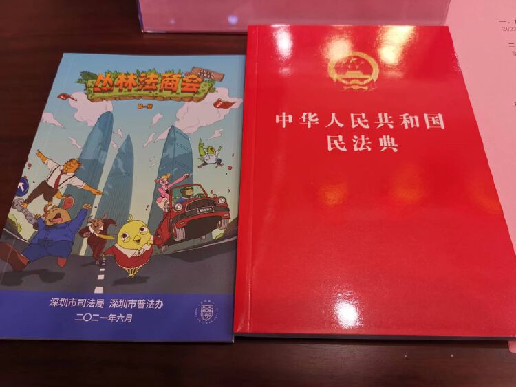 4月26日是第22个世界知识产权日。启动仪式上,深圳市司法局、市普法办向工业富联方面赠送了《民法典》书籍和《丛林法商会》普法漫画书。