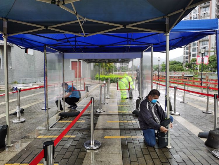 3月份,大鹏办事处全员下沉开展疫情防控工作,每个核酸检测时间点,“法律明白人”志愿者都提前来到检测现场,摆桌椅、安装通电设备、拉警戒线,维护现场秩序,提供现场指引。