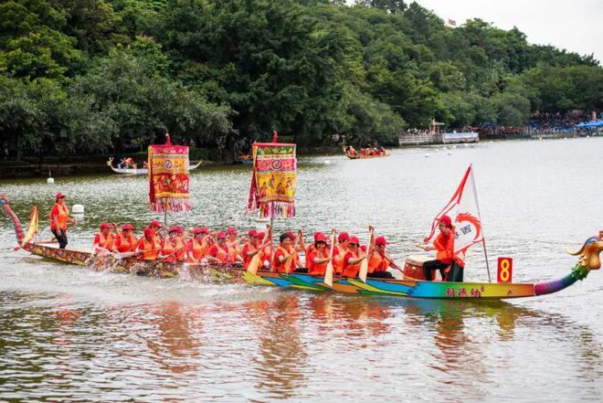 6月3日10时许,佛山西樵山登山大道售票处和登山索道售票处前已经排起了长长的队伍。当日,2022年南海西樵山锦龙盛会在西樵山天湖公园举行。数十条“潜龙”迎风破浪,再现数十年前“半山扒龙船”盛况,吸引了众多市民游客观赛。据史料记载,西樵天湖“半山扒龙船”始创于明朝嘉靖年间,距今已有近500年的历史。