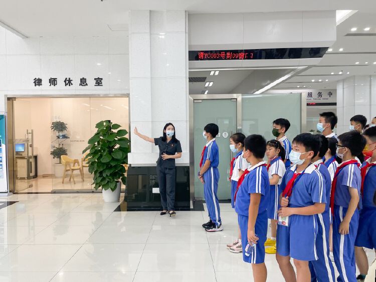 6月17日,深圳市罗湖区人民法院迎来了一群“特别的客人”,来自南湖小学、碧波小学的30余名师生在罗湖法院进行了一次“法治之旅”。这就是“罗湖区第二届未成年人关爱季系列活动之罗湖法院开放日”活动。活动设置了丰富的法治互动学习环节,让同学们沉浸式感受法院日常审判工作,学习未成年人保护法律知识。 参观诉讼服务中心
