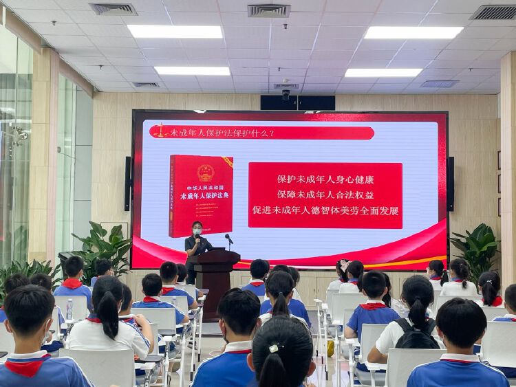 来到罗湖法院法律文化书院,曹法官开展了“菜单式”普法项目——《未成年人保护法》法律知识讲座,重点讲授了未成年人保护法修订的亮点,帮助同学们了解自身权益及其法律保障,引导同学们树立以法律武器维护自身权益的良好意识。