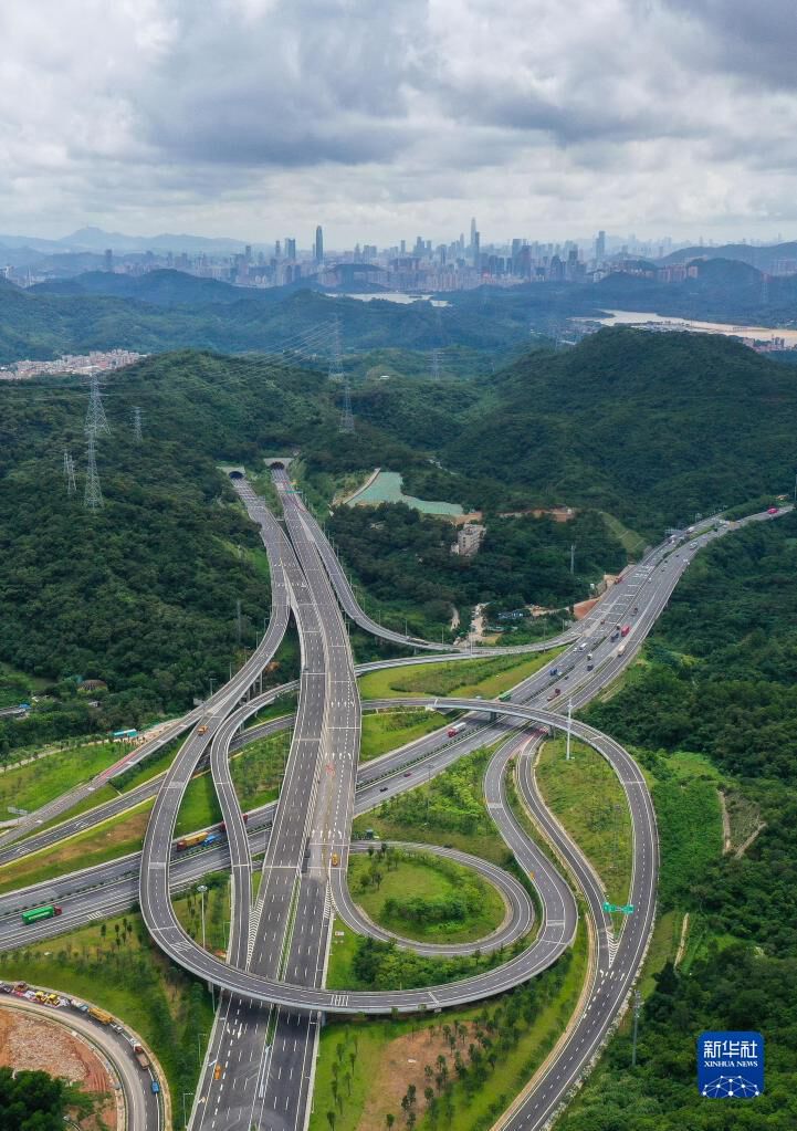 深圳东部过境高速公路起于莲塘口岸(6月17日摄,无人机照片)。
