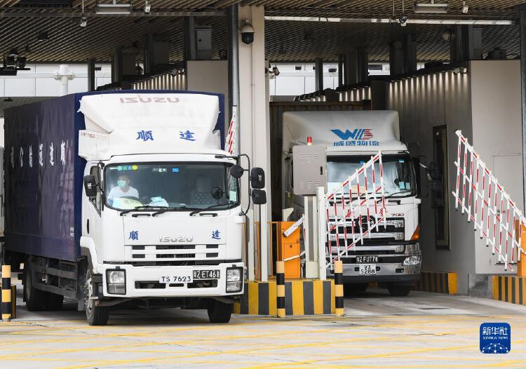 跨境货车在深圳莲塘口岸通过边检和海关等查验单位共同检查、一次放行的“一站式”通关