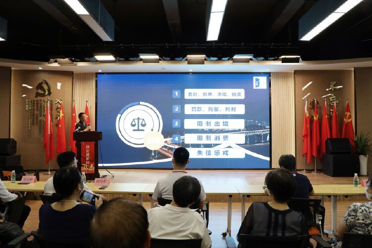 “当被执行人未按时履行生效法律文书确定的义务时,法院会采取哪些强制执行措施保障申请执行人的权益?”在普法宣讲会上,龙华法院执行员杨正达以案释法,通过六个典型案例向社区居民生动形象地讲解了执行相关法律法规。
