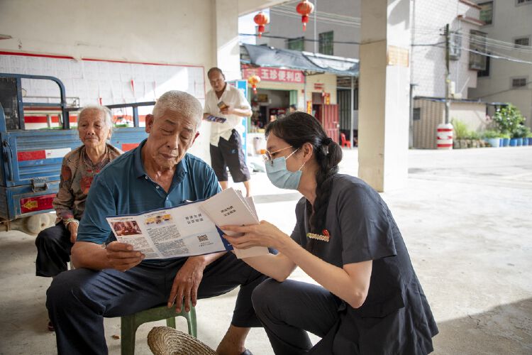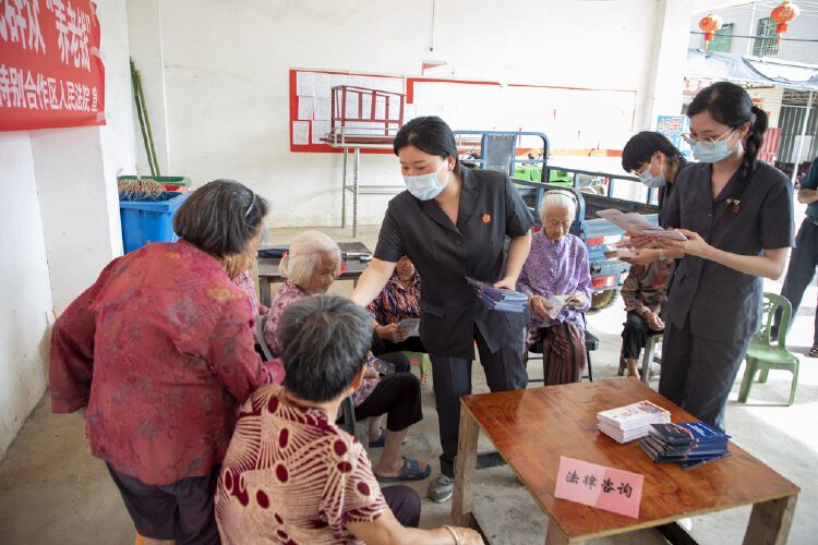 深汕法院干警首先来到圆墩村党群服务中心,向村委会干部了解村民群众的司法需求,收集有关法院工作的意见建议。随后在村委会干部的带领下,法院干警为圆墩村的老年人开展养老反诈宣传。