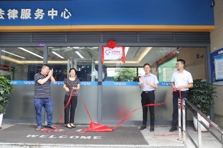 盐田区人才工作局局长刁平磊、区司法局副局长解秋艳共同为盐田区公共法律服务中心“红色驿站”揭牌。