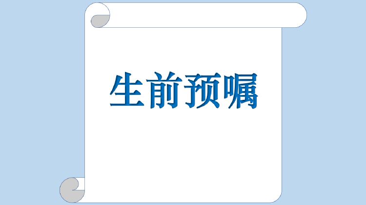 生前预嘱(living will)是指具有完全行为能力的人事先订立的,明确其在罹患不可治愈的伤病末期或者临终时,可自主决定采取或者不采取插管、心脏复苏等创伤性抢救措施,使用或者不使用生命支持系统,进行或者不进行原发疾病的延续性治疗等医疗措施的指示文件。