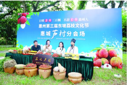 日前,2022年惠州东坡荔枝文化节惠城分会场直播活动在芦洲镇芦村村荔枝公园举行,主持人林立身着飘逸古装,惠州市旅游协会副会长李好以“苏东坡”扮相,携手芦村村党支部副书记、妇联主席舒赢以及10多位网红直播推介芦村村荔枝,助力乡村振兴。据统计,活动期间各平台累计超10万+网友在线观看,宣传曝光量达100万+。