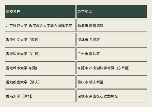 表:在粤“落户”的香港高校选址
