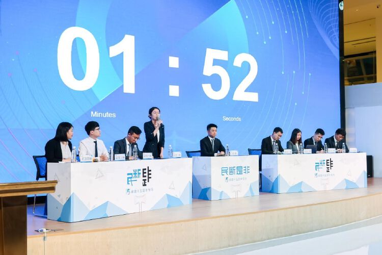 围绕“法律AI代替律师工作是利大于弊还是弊大于利”的主题,现场台上8位法律知识丰富、口才出众的青年律师辩手进行了激烈的辩论。