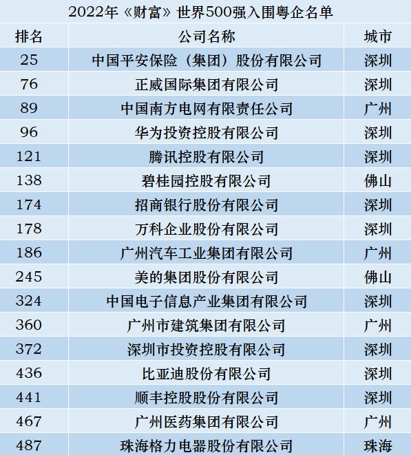 记者梳理统计,广东上榜企业有17家,新入榜的是比亚迪和顺丰,分别排名436位和441位。此外,去年12月,中国电子信息产业集团有限公司将总部迁至深圳。