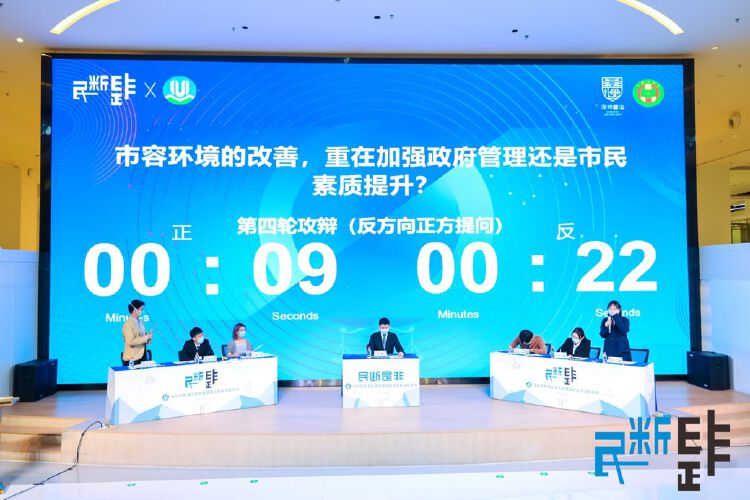 此次活动邀请到6位法律知识丰富、口才出众的辩手对议题“市容环境的改善,重在加强政府管理还是市民素质提升?”展开讨论。