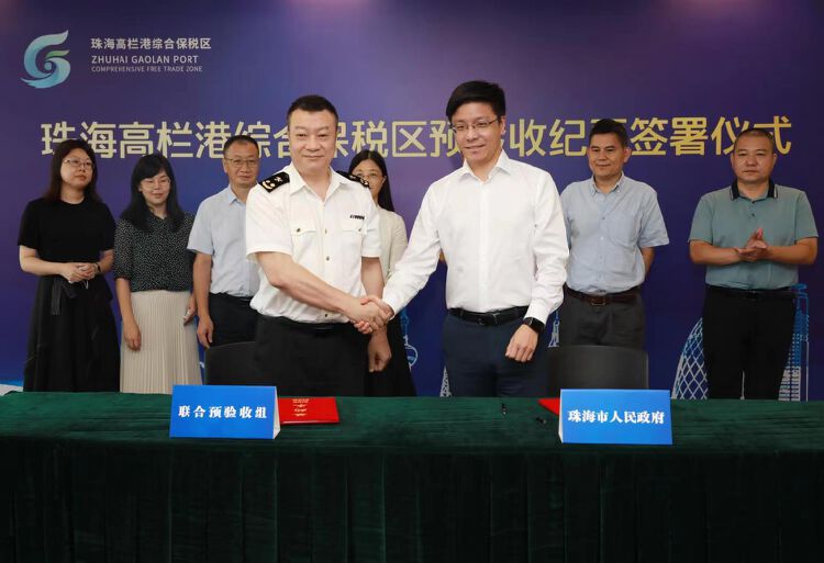 在珠海高栏港综合保税区基础和监管设施预验收纪要签署仪式上,联合预验收组组长、拱北海关副关长彭伟鹏郑重宣布:“经过联合预验收组一致评估,珠海高栏港综合保税区通过预验收!”本次预验收工作由拱北海关牵头,广东省发改委、财政厅、自然资源厅、商务厅、税务局、外汇局组成联合预验收组共同开展。当天上午,联合预验收组听取了珠海高栏港综合保税区建设情况汇报,查阅了相关资料,实地依次查看了卡口通道、隔离设施、查验场地、监管仓库、道路设施、信息化系统等基础和监管设施,经现场综合评审后,与珠海市人民政府签署了预验收纪要。