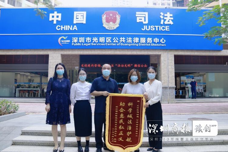 9月20日,深圳湾实验室一研究员家属到光明区公共法律服务中心赠送锦旗表谢意。