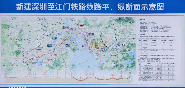 深江高铁是我国“八纵八横”高铁网沿海通道的重要组成部分,线路起自新建的深圳西丽站,向西经东莞市、广州市、中山市、江门市,接入江门至湛江铁路江门站,正线全长116公里,建设工期5.5年。全线共设深圳西丽、深圳机场东、东莞滨海湾、南沙、中山北、横栏、江门站等7座车站,其中江门站为既有车站,深圳西丽站等6座车站为新建车站。