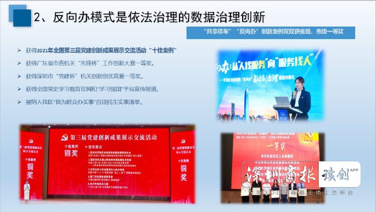 罗湖区政务服务数据管理局推出的“反向办”模式是依法治理的数据治理创新,通过“人找服务”到“服务找人”的工作理念转变,主动推送“过期不候”的政务服务,为企业群众办理身边事充当“智能管家”,为政务服务工作探索新路径。实施以来,该局开展AI智能服务超15000次,惠民服务超55万人次,相关做法获国家党建创新成果“十佳案例”铜奖和省先锋杯、市党建杯一等奖。该局还积极开展护网行动,先后参加网络安全攻防演练,常态化做好网络安全扫描监测,制定出台《罗湖区信息化项目服务商数据安全管理办法》,为全区依法治理依法行政筑牢网络安全坚实屏障。