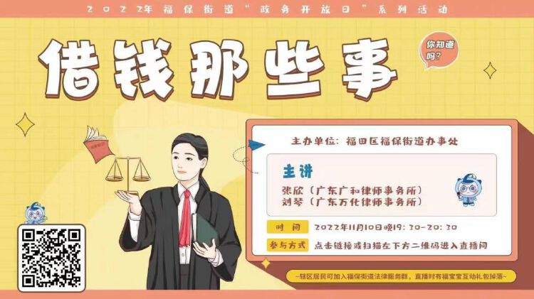 当晚19:30,福保街道“借钱那些事”普法直播活动准时开播。直播期间,主讲人张欣为居民就借钱产生常见问题进行普法,着重强调了规范书写借条及法律风险点等实操性规定。