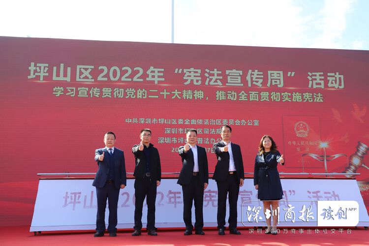 据悉,坪山区2022年“宪法宣传周”活动期间,还将开展“宪法进企业”“宪法进社区”“宪法进校园”“宪法进机关”等系列活动,进一步提升宪法宣传的渗透力和覆盖面,推动形成全民学习宪法、宣传宪法、遵守宪法的良好社会氛围。