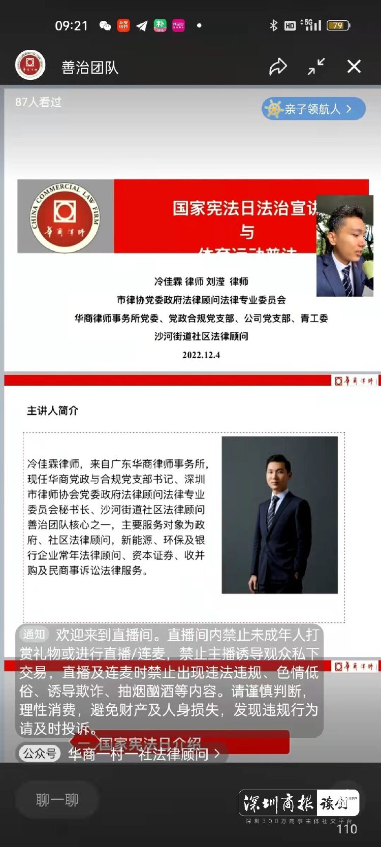 谌秋林律师表示,律师不仅自己要尊崇宪法,也有责任向社会宣传宪法,弘扬宪法精神。在国家宪法日当天,华商律所党委联合街道社区开展宪法普法活动,致力于让更多民众受益,让尊崇宪法的理念更加深入人心。