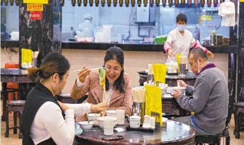 广州市民在餐厅就餐。