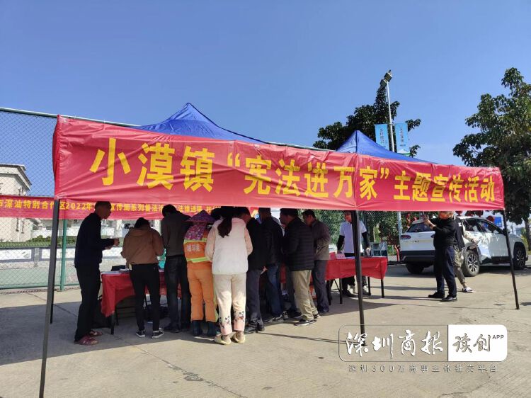 送法律进农村普法宣传活动是深汕特别合作区重点主题活动,此次活动在各镇设置法律咨询点,邀请村居法律顾问现场提供法律咨询,创新普法模式,通过宪法知识抢答赢纪念品、走街入户等群众喜闻乐见的形式开展普法,向来往群众宣讲宪法作为国家根本法的重要性以及乡村振兴、农村土地承包法等涉农重点法律法规。