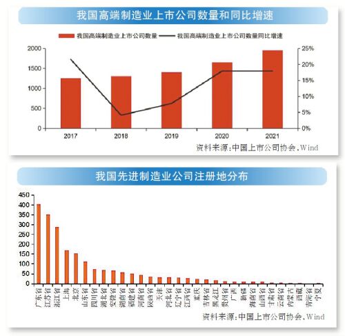 12月26日,中国上市公司协会发布《中国高端制造业上市公司白皮书2022》。报告显示,截至2022年12月10日,我国A股制造业上市公司数量达到3313家,占A股全部的65.5%。其中,高端制造行业上市公司数量达到2121家,占制造业上市公司的65%,相比于2017年底的1250家增长了69.7%。