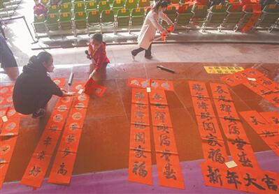 书法名家为市民免费写挥春、春联。