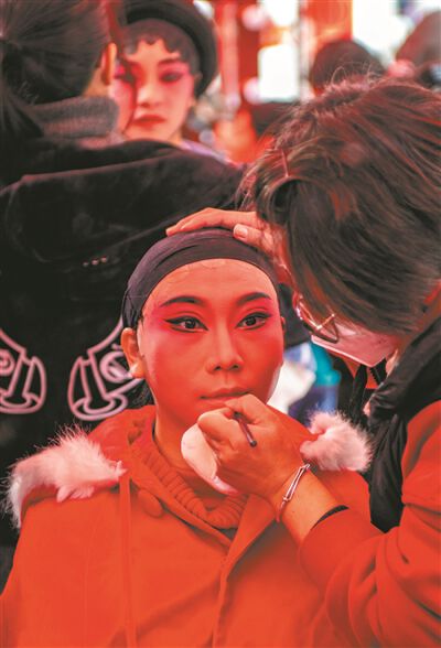 市民游客画大妆进行“沉浸式”粤剧体验。