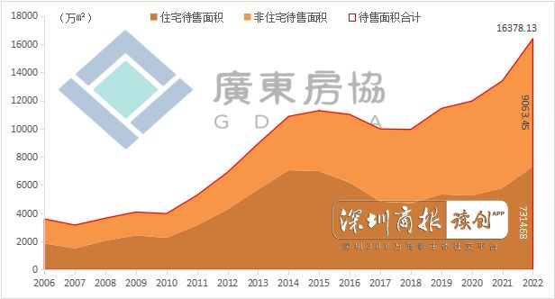 从待售面积看,截至2022年末,全省商品房待售面积1.64亿平方米,同比增长22.3%。其中,商品住宅7314.68万平方米,非住宅商品房9063.45万平方米,同比分别增长26.4%和19.2%,均创下历史最高水平。