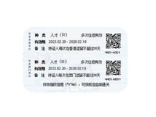 往来港澳人才签注式样。(中华人民共和国出入境管理局供图)